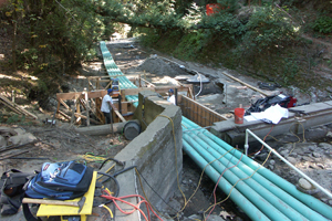 Another area of Blue Spruce expertise is the design and implementation of drainage systems.  While not as aesthetically appealing as designing a beautiful garden, resolving a drainage problem or implementing well-designed system is equally important to the successful creation of outdoor living spaces and critical to protecting property assets from erosion and the damaging effects of uncontrolled water on structures and plant material.